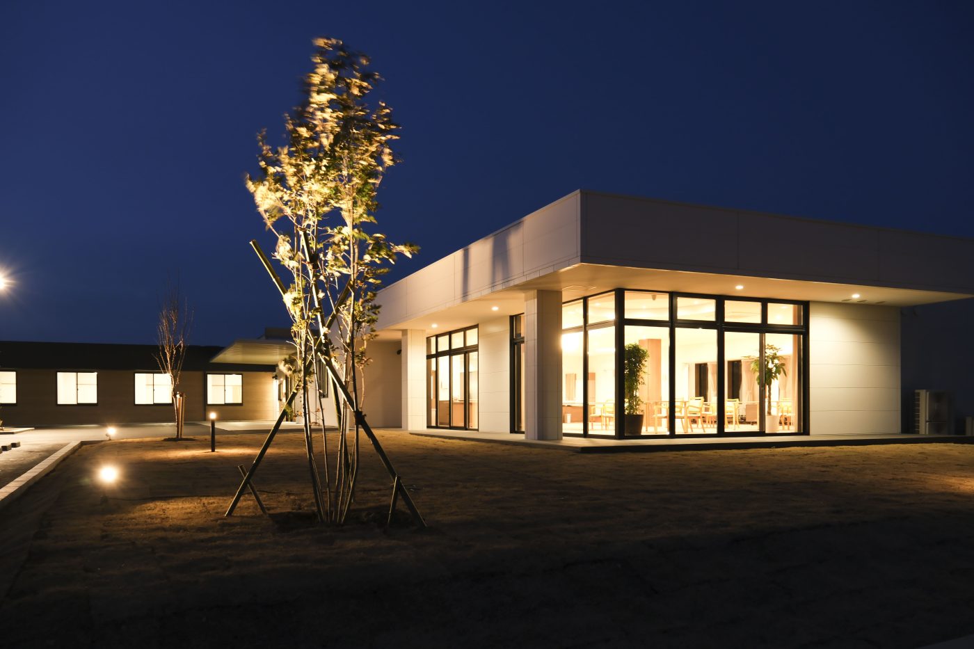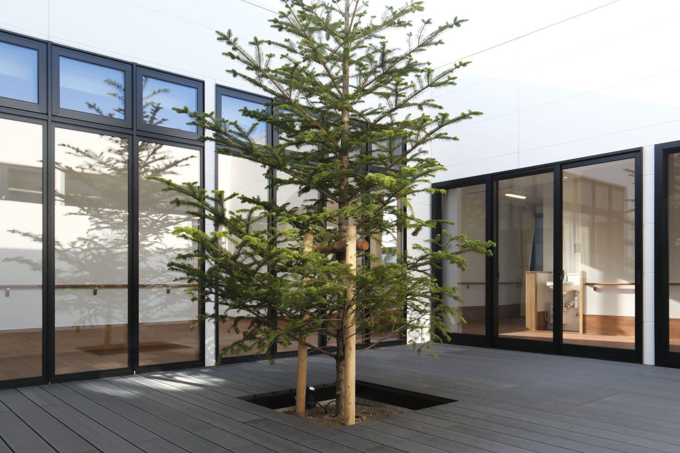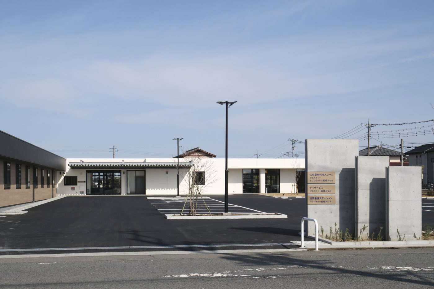 建物中心に鉄骨造のデイサービスと有料老人ホームのサービス部門を配置した。鉄骨造棟の左右に羽が生えるような形で、木造棟を配置し、有料老人ホームとして計画した。