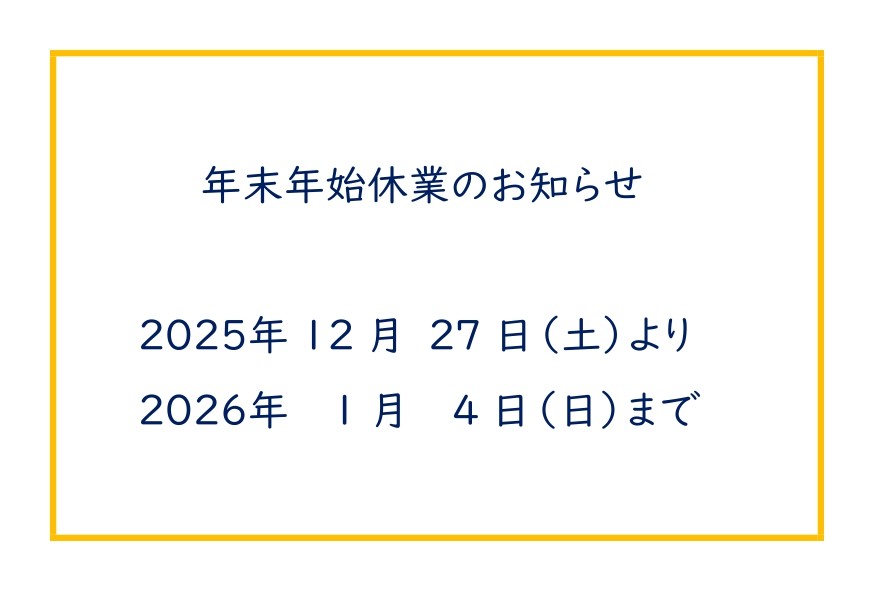 年末年始休業期間 2025年12月27日(土)より 2026年1月4日(日) まで